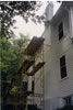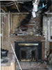26. Chimney former in place before pouring masonry liner | 27. Poured masonry liner after removal of chimney former | 28. Front view of fireplace after a chimney fire (note severely damaged wall above the fireplace) | 29. Front view of fireplace after a chimney fire (note severely damaged wall above the fireplace) | 30. Stainless steel liner and insulation wrap |