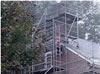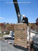 16. Ground & roof scaffolding to safely work around chimney | 17. Inside view of unlined chimney | 18. Roof scaffolding for chimney restoration | 19. Top view of two finished masonry linings | 20. Masonry flue lining in progress |