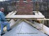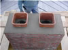 | 24. Two chimney formers wrapped together to create an oval shaped flue | 25. Masonry flue lining in progress |